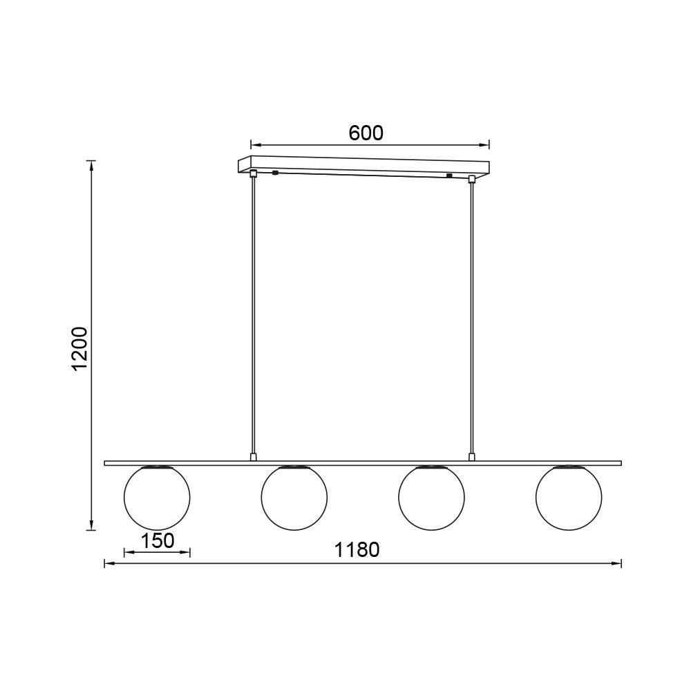 - Висечки елегантен лустер со 4 топки наредени хоризонтално во права линија кои овозможуваат рамномерно осветлување по цела должина и механизам на суспензија, модерен и елегантен дизајн што создава пригушена и топла светлина, изработен од комбинација на опал (млечнокристално) стакло и метал во црна боја